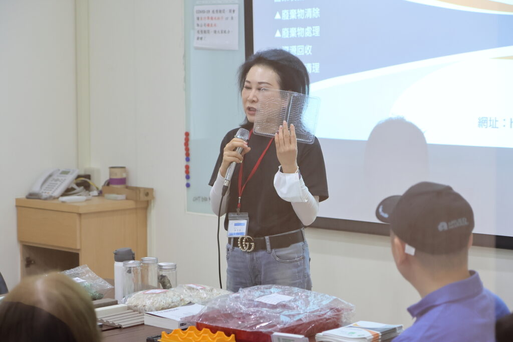 董事長向天使投資聯誼會介紹栗昌的薄片原料、製作過程與之後能夠製作成的產品