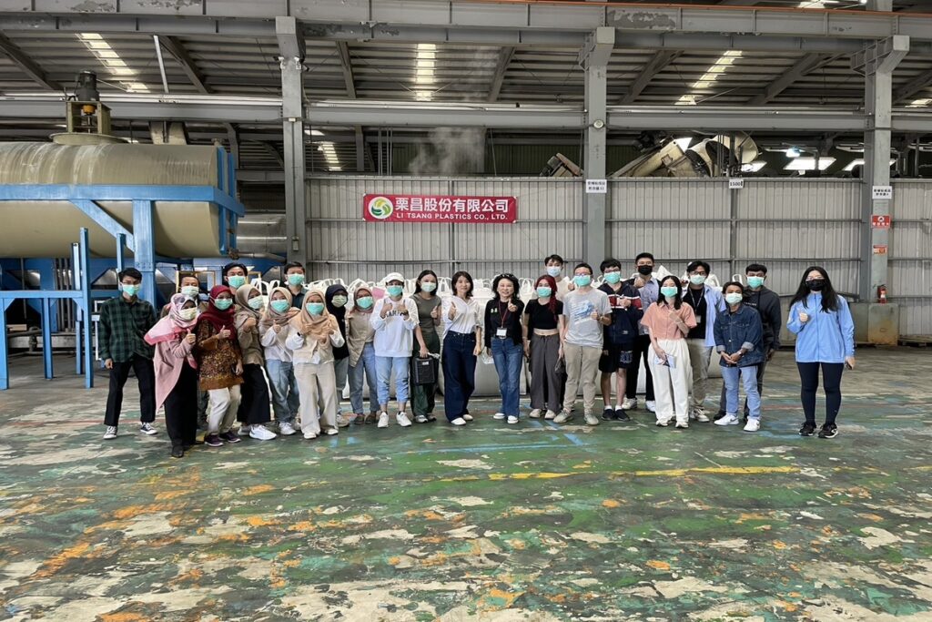 台科大外籍學士及碩士到場參訪,了解PET回收再製水洗過程。